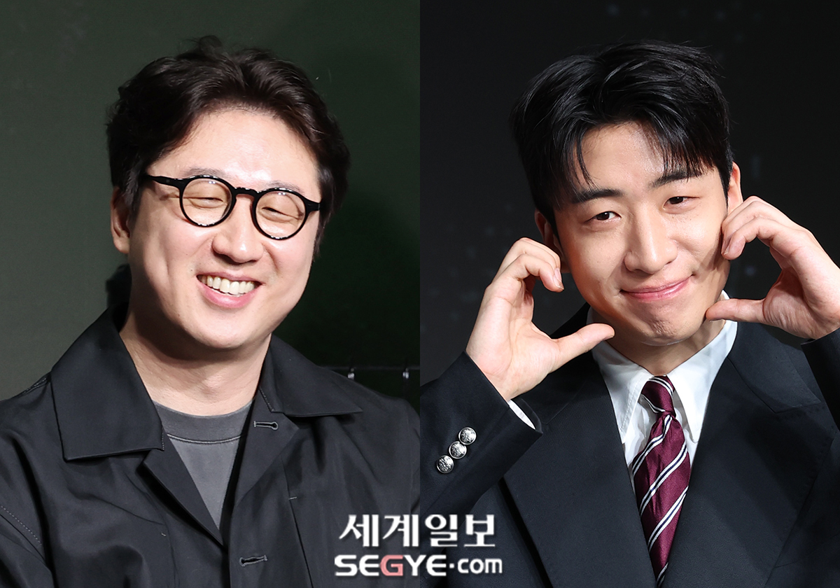 유수민 감독(사진 왼쪽)과 배우 유수빈 형제가 21일 서울 마포 호텔 나루 서울 엠갤러리에서 진행된 넷플릭스 시리즈 ‘약한영웅 Class 2’의 제작발표회에 참석해 포즈를 취하고 있다.