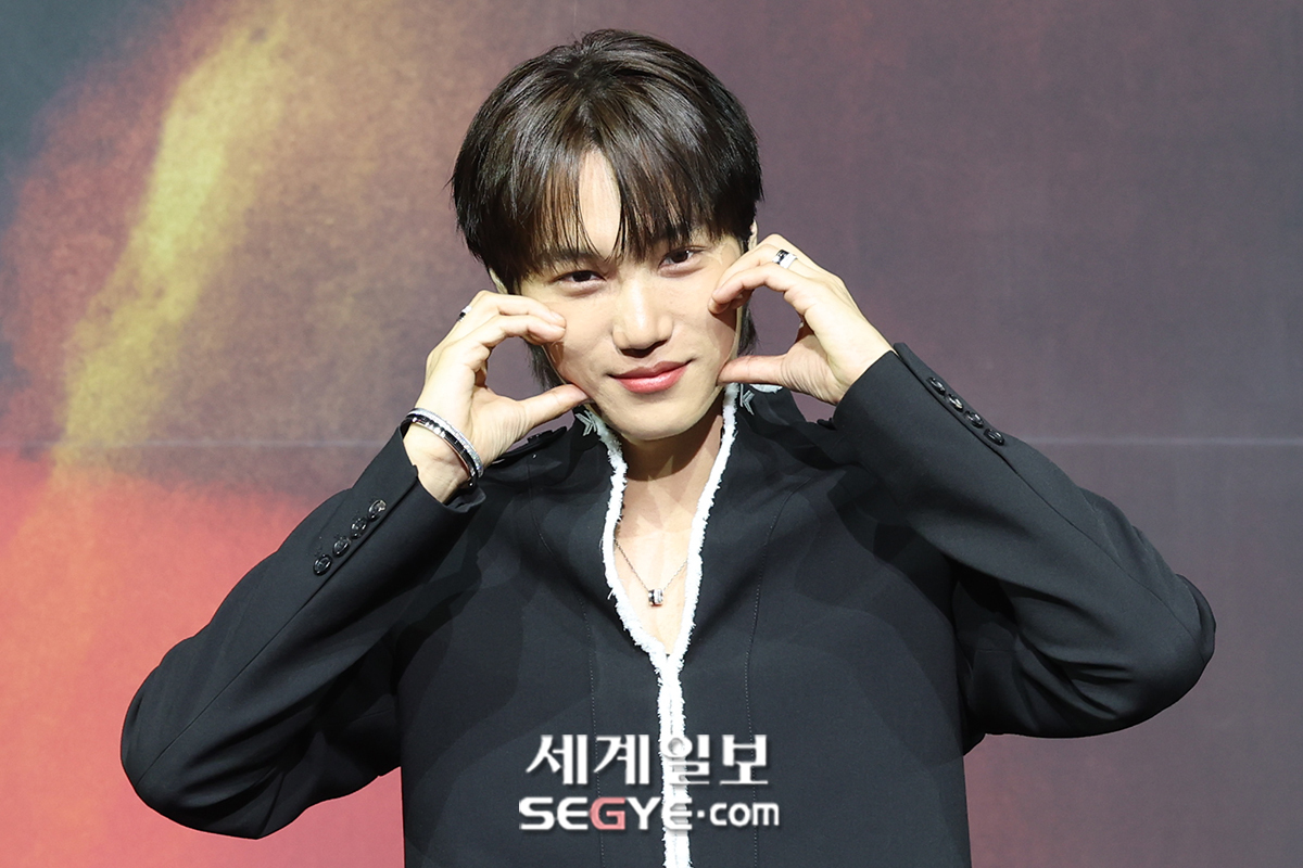 가수 카이가 21일 서울 광장동 예스24 라이브홀에서 열린 네 번째 미니앨범 '웨이트 온 미(Wait On Me)' 발매 쇼케이스에 참석해 포즈를 취하고 있다.