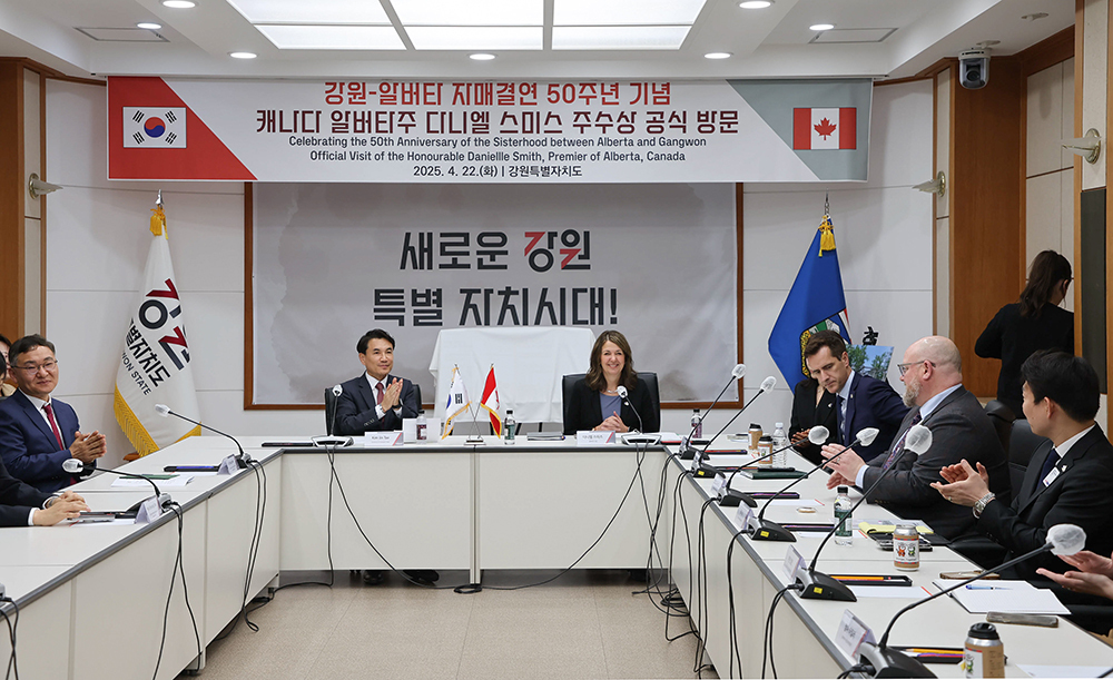 다니엘 스미스 알버타 주수상은 “이번 방문은 알버타와 강원이 지난 50년간 쌓아온 깊은 파트너십에 대한 알버타의 확고한 의지를 보여주는 것”이라며 “약 2만4000명 한국계 주민이 살고 있는 알버타는 강원도와 뿌리 깊은 인연을 이어오며 스포츠∙교육 교류, 청정에너지, 농식품 등 다양한 분야에서 지속적인 협력을 이어왔다”고 화답했다.