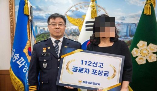 경찰은 112신고로 범죄를 예방해 타인의 생명과 재산을 보호하는 데 기여한 공로자에게 포상금을 지급하고 있다. 이번 포상은 송파경찰서에서 올해만 세 번째다. 김용종 송파경찰서장은 “범죄와 사고로부터 안전한 지역사회를 만들기 위해 경찰과 시민이 함께 범죄를 예방하는 사회적 분위기를 조성하는 것이 중요하다”고 강조했다.