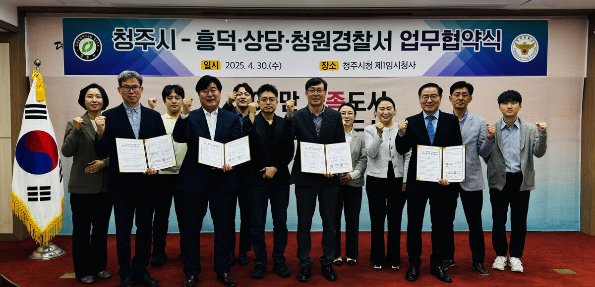청주시는 30일 임시청사 대회의실에서 지역 내 경찰서 3곳(흥덕, 상당, 청원)과 시민안전보험 안내 등의 내용을 담은 협약을 체결했다. 경찰에서도 시민안전보험 수혜자에게 안내하는 등 시민 혜택을 넓히기 위해서다.