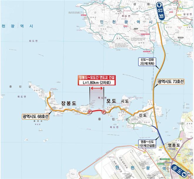 이번 사업은 2011년 7월 행정안전부에서 접경지역 주민의 정주 생활 및 교통여건 개선을 위해 발전종합계획(2011~2030년)에 반영된 바 있다. 이후 시는 2023년 5월에 장봉도와 신·시·모도 간 이어지는 15.9㎞ 구간을 광역시도(제68호선)로 노선을 지정했다.