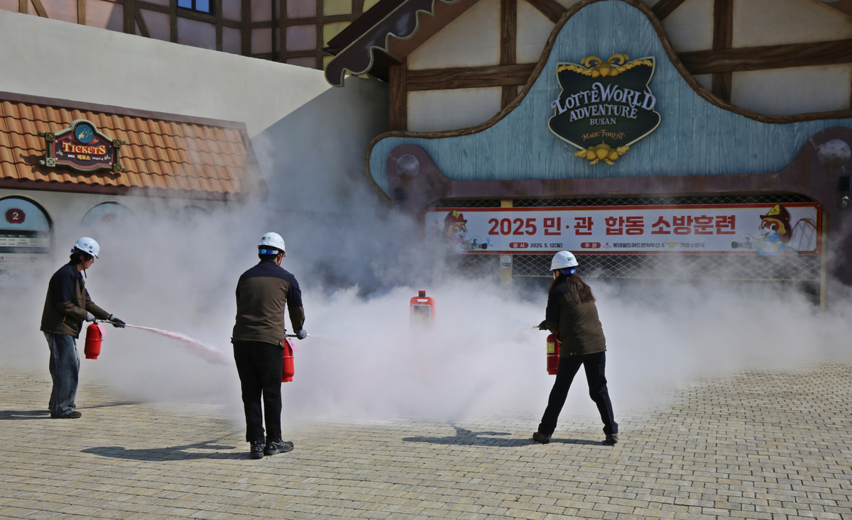 롯데월드 어드벤처 부산(롯데월드 부산)이 본격적인 나들이 철을 맞아 테마파크 이용객들의 안전과 임직원들의 소방 안전 인식 제고를 위한 민관 합동 소방 훈련을 실시했다.