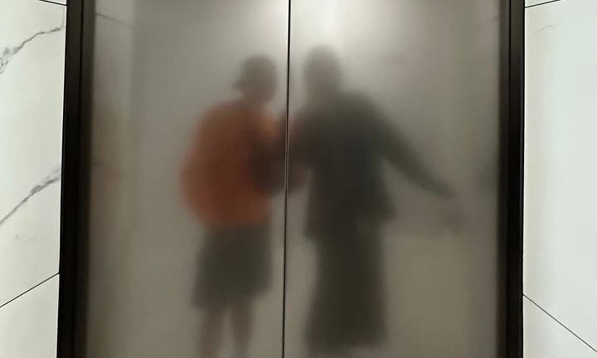 엘리베이터에 비치는 두 사람의 키 차이도 눈에 띄었다.