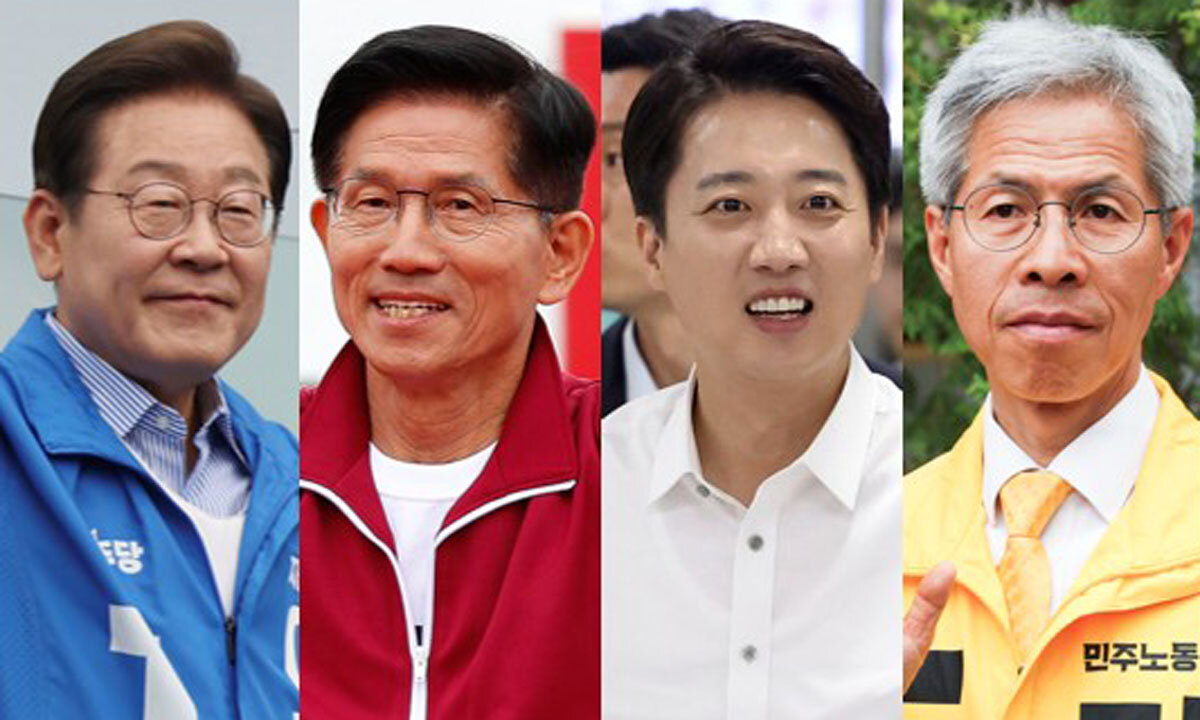 제21대 대통령 선거를 하루 앞둔 2일 이재명 더불어민주당 대선후보와 김문수 국민의힘 대선후보, 이준석 개혁신당 대선후보, 권영국 민주노동당 대선후보가 지지를 호소하고 있다. 뉴시스