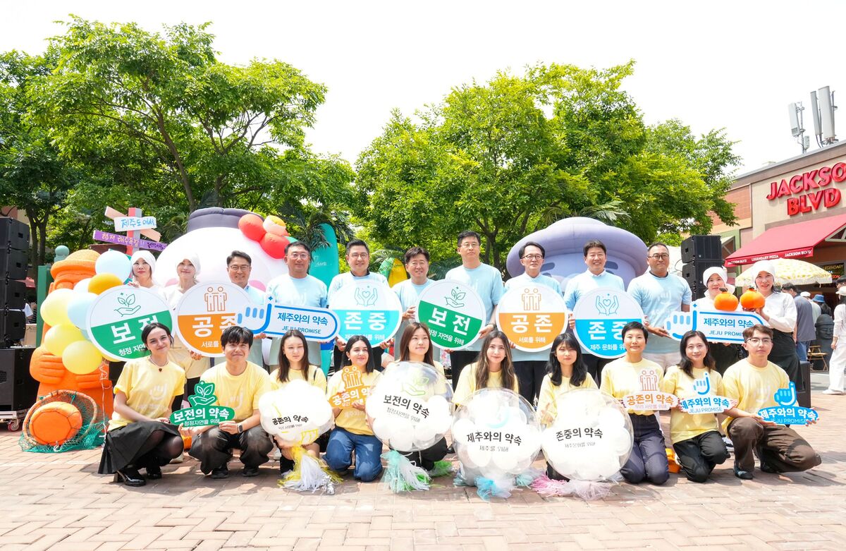 이날 제주와의 약속’ 청년서포터즈 발대식도 진행됐다. 국내 대학생 5명과 외국인 유학생 8명으로 구성된 서포터즈단은 제주와의 약속을 널리 알리는 역할을 맡는다.