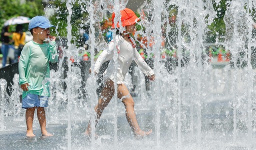 서울 한낮 최고기온이 30도를 기록한 9일 서울 종로구 광화문 분수대에서 아이들이 물놀이를 하고 있다. 기상청은 10일도 전국 대부분 지역이 초여름 날씨를 보이며 아침 기온은 17~21도, 낮 기온은 24~33도를 기록할 것으로 예보했다.