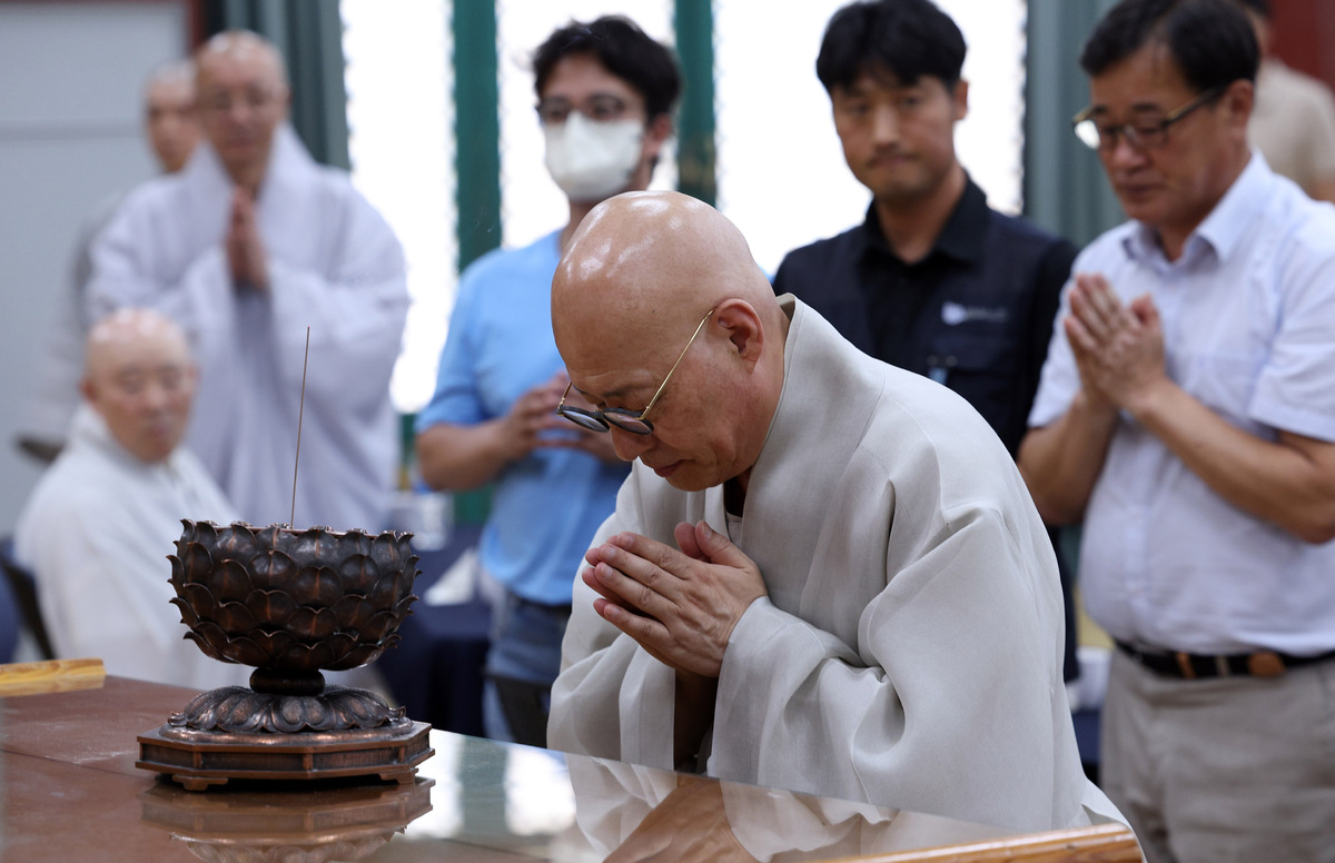 대한불교조계종이 22일 서울 강남구 봉은사에서 '평등세상을 위한 사회적 약자 초청 특별법회 및 간담회'를 열었다. 봉은사 법왕루에서 특별법회를 마치고, 보우당으로 이동해 점심공양과 간담회 순으로 행사는 진행됐다. 특별법회에는 아리셀 참사 유가족, 제주항공 참사 유가족, 전세사기 피해자, 성소수자 등 40여 명이 참석했다.