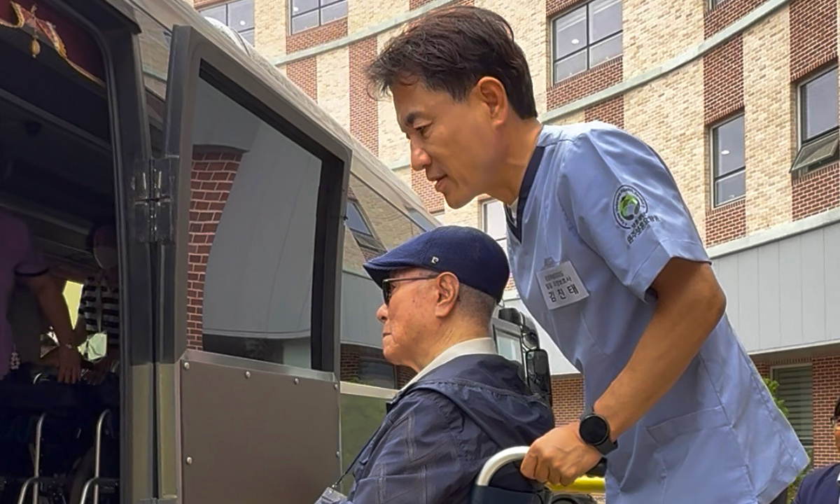 어르신들의 현장학습 이동을 위한 휠체어 리프트 버스 탑승을 도운 뒤 김 지사는 “호국보훈의 달을 맞아 이곳 보훈요양 유공자 어르신들을 뵙고 인사드릴 수 있어 감사한 마음”이라며 “도는 배우자에게 참전 수당이 승계될 수 있도록 중앙정부에 공식 건의할 계획”이라고 말했다. 이어 "앞으로 요양보호사 처우개선을 위해 장기요양요원 지원센터를 지속적으로 활성화 해나가겠다”고 덧붙였다.