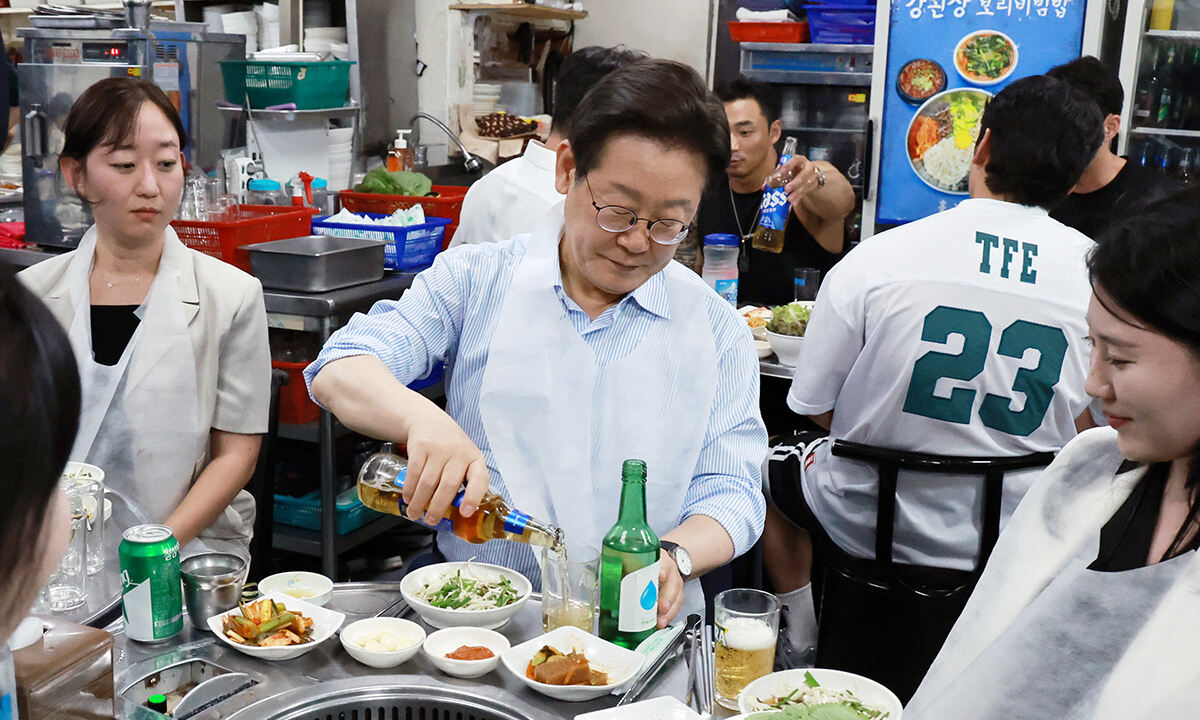 이 대통령은 주문한 주류가 나오자 ‘소주 1·맥주 3’의 비율로 소맥을 타 일일이 직원들에게 나눠줬다.