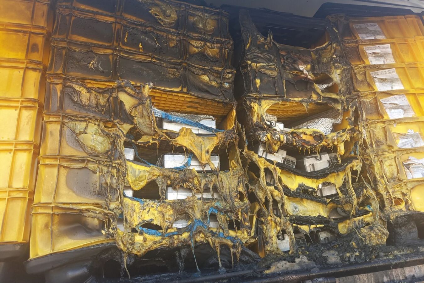 고속도로 달리던 대형 화물차에서 화재가 발생해 적재된 리튬배터리 수백 개가 불타는 피해가 발생했다.