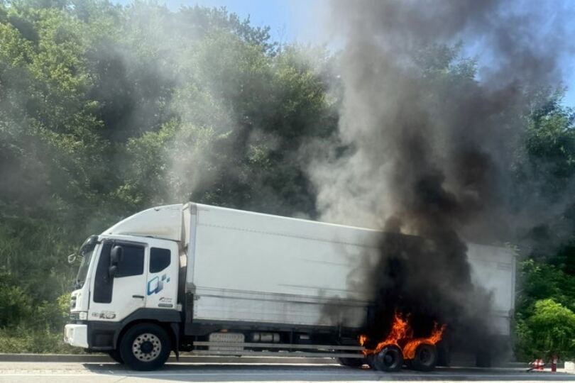 운전자는 “주행 중 차량 뒤쪽에서 ‘퍽’ 하는 소리가 들려 갓길에 정차한 뒤 확인해 보니 뒷바퀴 부위에서 연기와 불꽃이 일었다”며 “차량용 소화기로 진화를 시도했지만, 불길이 잡히지 않아 곧바로 신고했다”고 말했다.