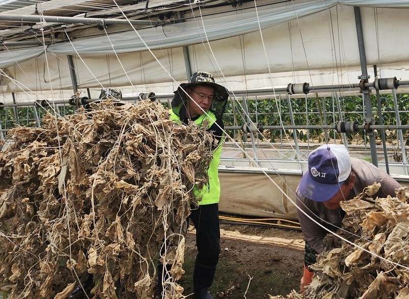 박서홍 농업경제대표이사를 비롯한 임직원 50여 명은 서산시 음암면 소재 오이·딸기하우스를 운영하는 농가를 방문해 침수된 하우스의 폐비닐·토사 제거, 작물 정리 등 피해 복구 작업을 실시하였다.