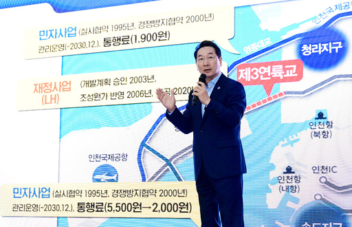 유 시장은 “국토부는 영종대교 민자협약을 재검토해 잘못된 조항을 고치고, LH는 토지 매각 수익과 분양 이익을 통행료 무료화 및 손실보상 재원으로 환원해야 한다”고 말했다.