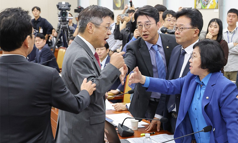 민주당 김우영 의원이 국민의힘 박정훈 의원으로부터 욕설이 담긴 문자를 받았다며 해당 문자와 박 의원 전화번호를 공개했고, 이를 두고 양당 의원 간 고성이 오가면서 정회가 반복됐다.