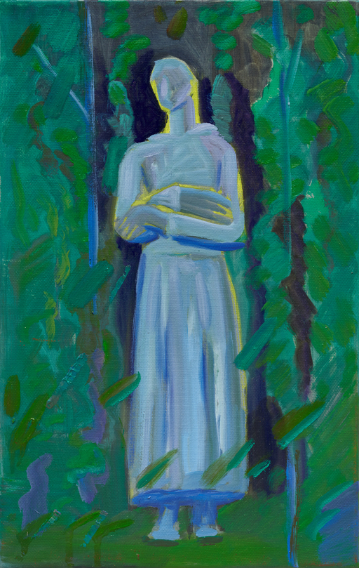 얼핏 일상의 단편 같아 보이는 소품 연작에서도 아침 일기를 쓰는 마음이 담겨 있다. 애착 인형을 들고 걸어가는 뒷모습, 비를 맞고 있는 비둘기, 바둑돌을 두는 손, 할머니의 오이 반찬을 먹는 모습 등. 특별할 것 없는 찰나의 순간이지만 여기에 작가의 상상이 덧입혀진다. 오이 반찬은 중력을 거스른 채 허공으로 상승하고 비둘기는 하나인지 둘인지 알 수 없는 형태로 그려진다. 꽉 잡은 인형만큼이나 단단한 주먹, ‘말하는 사람’의 굳게 닫힌 입. 이것은 단순한 관찰이 아니다. 여기에는 대상에 대한 마음의 시선이 반영되어 있다.