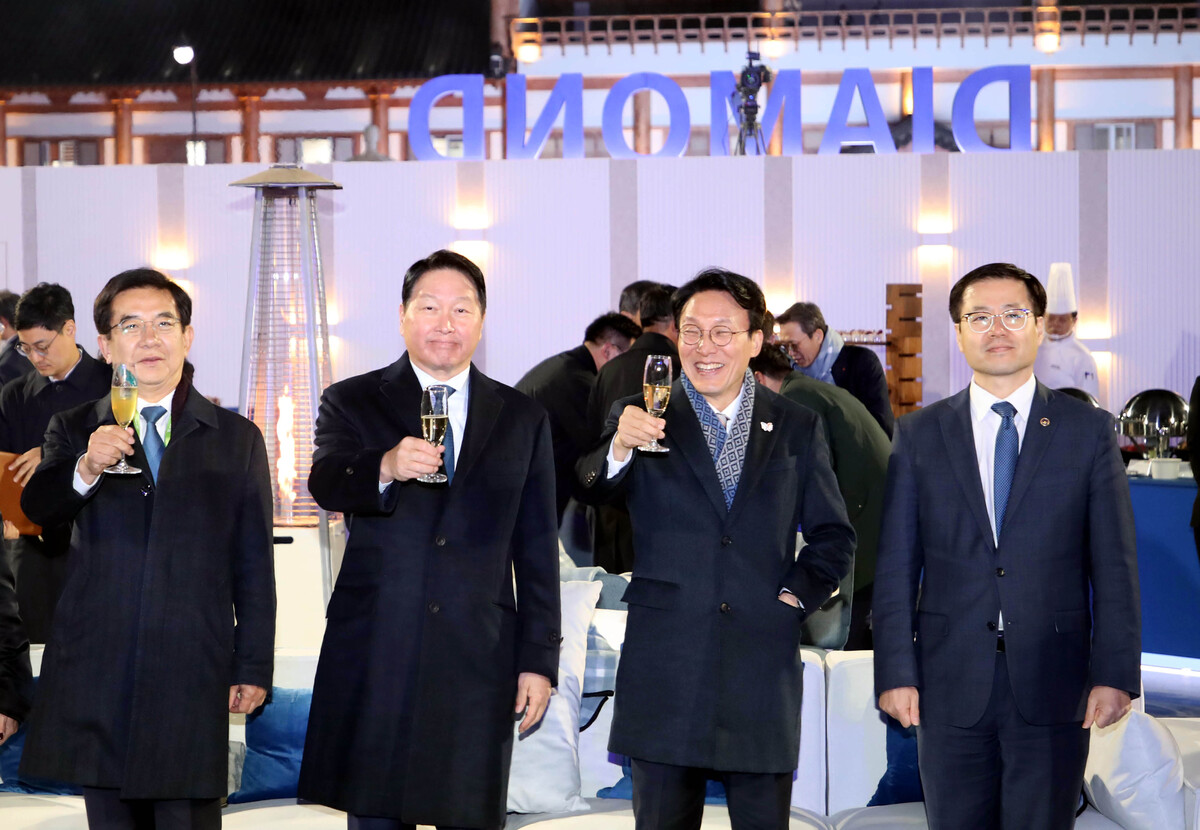 한국에 모인 경제인들이 머물 수 있는 ‘바다 위 숙소’ 크루즈도 이날 경북 포항시 영일만항에 도착했다. 크루즈는 대한상의 회장으로서 이번 CEO 서밋 의장을 맡은 최 회장이 제안한 숙소 해결 방안으로, 850개 객실 규모 피아노랜드호와 250개 객실 규모 이스턴비너스호가 부두에 닻을 내렸다.