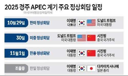 한편 이 대통령은 트럼프 대통령과의 회담 전 APEC 최고경영자(CEO) 서밋 개막식에서 특별 연설을 한다.