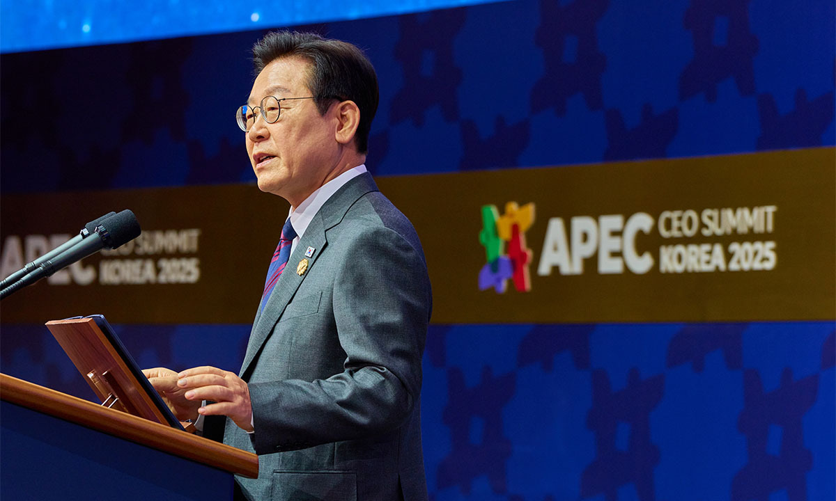 이 대통령은 이날 경북 경주 예술의전당에서 열린 에이펙 CEO 서밋 개회식 특별연설에서 2005년 부산 에이펙 정상회의를 언급한 뒤 “2025년 오늘날의 에이펙을 둘러싼 대외적 환경은 그때와는 많이 다르다”고 말했다. 이 대통령은 “위기상황일수록 역설적으로 연대 플랫폼인 에이펙의 역할은 더욱 빛을 발할 것”이라며 “어려울 때 친구가 진짜 친구라는 말이 있다. 에이펙은 위기의 순간마다 서로의 손을 잡고 연대하며 상호 신뢰가 상호 번영의 지름길임을 입증해왔다”고 했다.