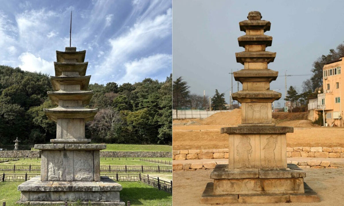 옛 절터를 천년 동안 묵묵히 지켜온 석탑들이 국보가 됐다. 국가유산청은 ‘서산 보원사지 오층석탑’(왼쪽)과 ‘예천 개심사지 오층석탑’(오른쪽)을 각각 국보로 승격해 지정할 예정이라고 30일 밝혔다. 두 석탑 모두 1963년 보물이 된 이후 약 62년 만에 국보 승격이다.