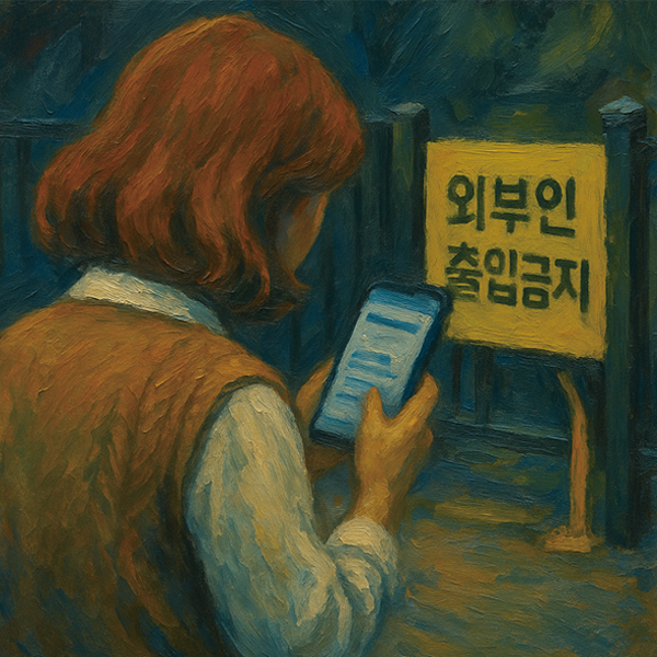 ‘외부인들이 자꾸 들어와서 시설물 부수는데 관리비는 우리가 내니 속 터져요’ 댓글은 이제 픽시자전거를 험하게 타고 다니는 ‘외부인’ 아이들과 놀이터에서 아이들을 노리는 ‘외부인’ 남자와 으슥한 곳에서 수상쩍은 행동을 하는 ‘외부인’ 청소년들 이야기로 빼곡했다. 나는 그만 보고 있던 화면을 껐다. 소통 게시판이지만 누구도 대화하지 않고 누구도 소통하지 않는 그곳에서, 편견으로 뒤덮인 기이한 혼잣말만 가득한 그곳에서 게시글 애초의 목적은 이미 사라진 뒤였다.