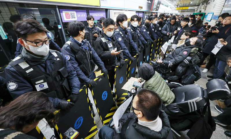 전장연 활동가 10여명은 "장애인 권리예산 보장하라"는 등의 구호를 외치며 탑승 시위를 벌였다. 이 과정에서 서울교통공사 관계자들과 물리적 충돌도 빚어졌다.