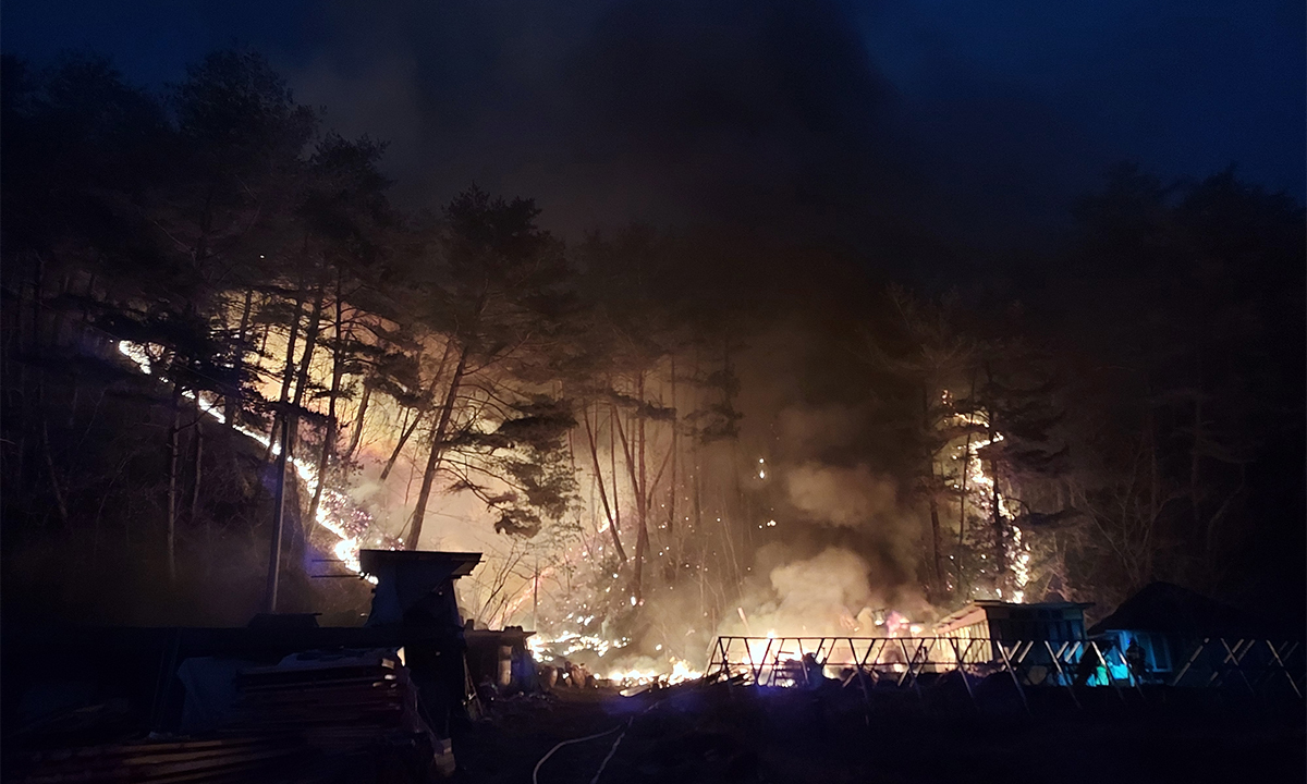 당국은 날이 밝는 대로 소방헬기도 투입할 예정이다. 산림 당국에 따르면 오후 11시 기준 화선 길이는 2.2㎞로, 이 중 0.91㎞가 진화돼 진화율이 41%다. 산림 당국은 오후 10시를 기해 산불 대응 1단계(피해 예상 면적이 10∼50㏊ 수준으로 추정되는 산불)를 발령했다. 1㏊는 1만㎡이다. 정확한 피해 면적과 화재 원인 등은 진화 작업을 마치는 대로 당국이 조사할 방침이다.