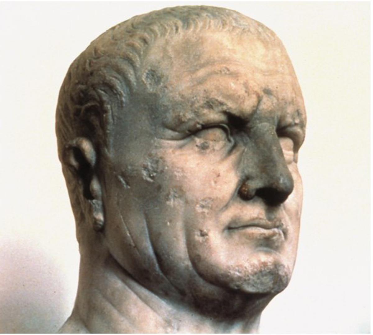 그 베스파시아누스 황제의 흉상이다. 간략하지만 사실적인 묘사 안에 섬세한 효과들이 담겼다. 짧은 곱슬머리가 바짝 붙은 둥글고 단단한 두상, 선이 굵고 오뚝한 콧날과 턱과 목의 깊게 파인 주름 등이 강인함을 풍긴다. 꽉 다문 입과 크게 부릅뜬 눈, 이마와 미간의 험악한 주름 등이 조금은 무자비하다는 인상도 만들어낸다. 황제의 모습이지만 미화하거나 위엄 있는 모습으로 꾸미려 하지 않았고, 인상과 표정을 있는 그대로 사실적으로 나타내려 한 흔적을 볼 수 있다.