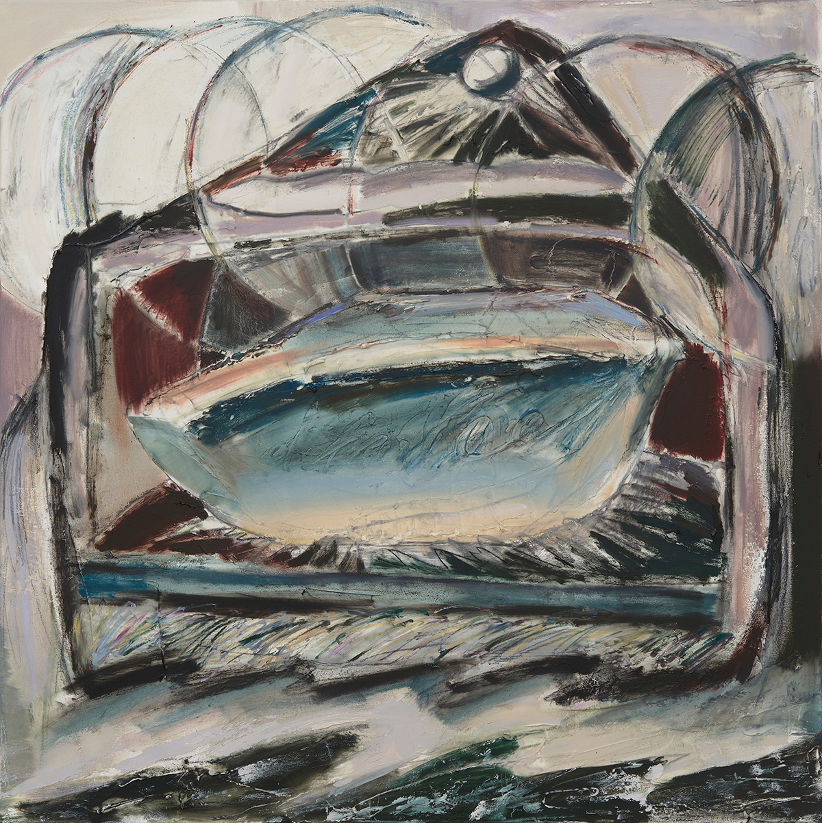 끝이 끝이 아니라는 믿음, 투명한 연결 고리에 대한 관심은 달과 바다의 관계로도 은유된다. 물리적으로 결코 닿을 수 없을 만큼 멀리 있지만, 달의 중력이 바다를 끌어당기기에 바다는 끊임없이 움직임을 이어간다. ‘달과 바다의 사이’에서는 검푸른 파도와 희미한 달빛이 서로의 경계를 지우며 맞닿아 있다. 작가는 영원히 만나지 못하는 둘을 집을 닮은 공간 안에 함께 둔다. 멀리 떨어져 있지만 강하게 연결된 두 존재처럼, 작가는 이별 이후에도 지속되는 관계와 보이지 않지만 강력하게 작동하는 것들을 담아낸다.