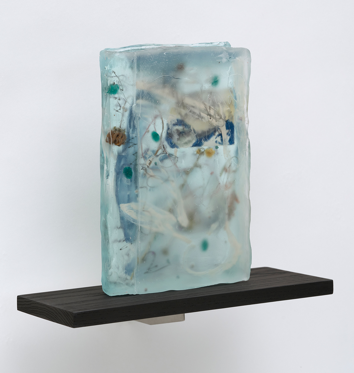 외할머니의 목걸이에서 나온 구슬을 레진으로 봉입한 ‘잔존하는 것들을 뭉쳐 만든 슬픔’에서도 사라진 존재들이 어딘가에서 계속 어떤 형태로든 남아있기를 바라는 마음이 담겨 있다. 투명한 덩어리 속에서 떠오르는 작은 구슬은 영원의 결정(結晶)으로 변모하여 ‘죽음 이후의 시간’을 위한 사물로 빚어진다. 유품을 그대로 보존할지, 작품화할지 망설이던 마음은 다음 차원을 향한 초월의 의지가 우위를 점하며 거두어졌다. “무언가 해야만 했어서”라는 작가의 말은 슬픔과 애도의 시간을 지나 나아가겠다는 결의에 가깝다.