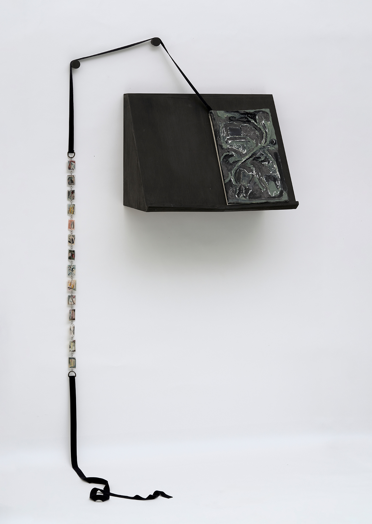 ‘긴 꼬리 책’에는 연결에 대한 사유와 전환에 대한 의지가 작업 방식으로 드러난다. 작가는 본래 7m 길이에 달하는 그림을 아코디언처럼 접으며, 기존의 장면들이 우연한 방식으로 이어지고 새로운 조합을 만들어내는 모습을 목격했다. 읽을 수 없는 문장처럼 불쑥 튀어나온 이미지들은 또 다른 언어와 의미를 낳았고, 작가는 그 장면들을 독립된 작은 그림들로 분리해 ‘긴 꼬리 책 : 떨어져 나온 문장’이라는 제목의 연작으로 확장했다. 그리고 그 그림들을 다시 미니어처로 축소하고 연결하여 하나의 ‘꼬리’와 같은 모양으로 탄생시켰다.