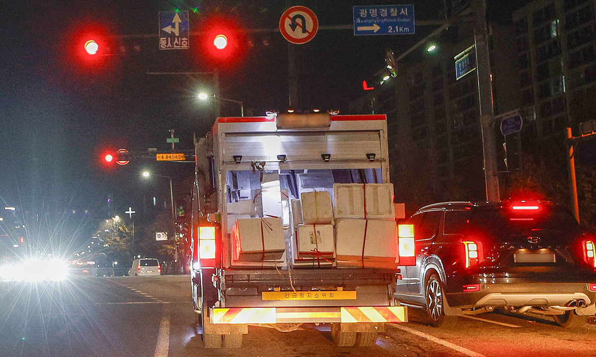 두 사람은 주민들이 잠든 골목에서 말없이 호흡을 맞췄다. 신씨는 80㎝ 높이의 2.5t 차 조수석에서 수십 차례 뛰어내렸고, 운전원은 신씨가 던지기 쉬운 각도에 맞춰 후진했다. 신씨는 허리를 숙여 봉투를 잡고, 일어서 두 팔로 던지고 다시 숙이는 동작을 쉼 없이 이어갔다. 이틀 동안 김씨의 후진 횟수는 평균 52회, 신씨가 차량을 오르내린 횟수는 168회였다. 48층 아파트를 왕복으로 오르내리는 것과 비슷한 수준이었다.