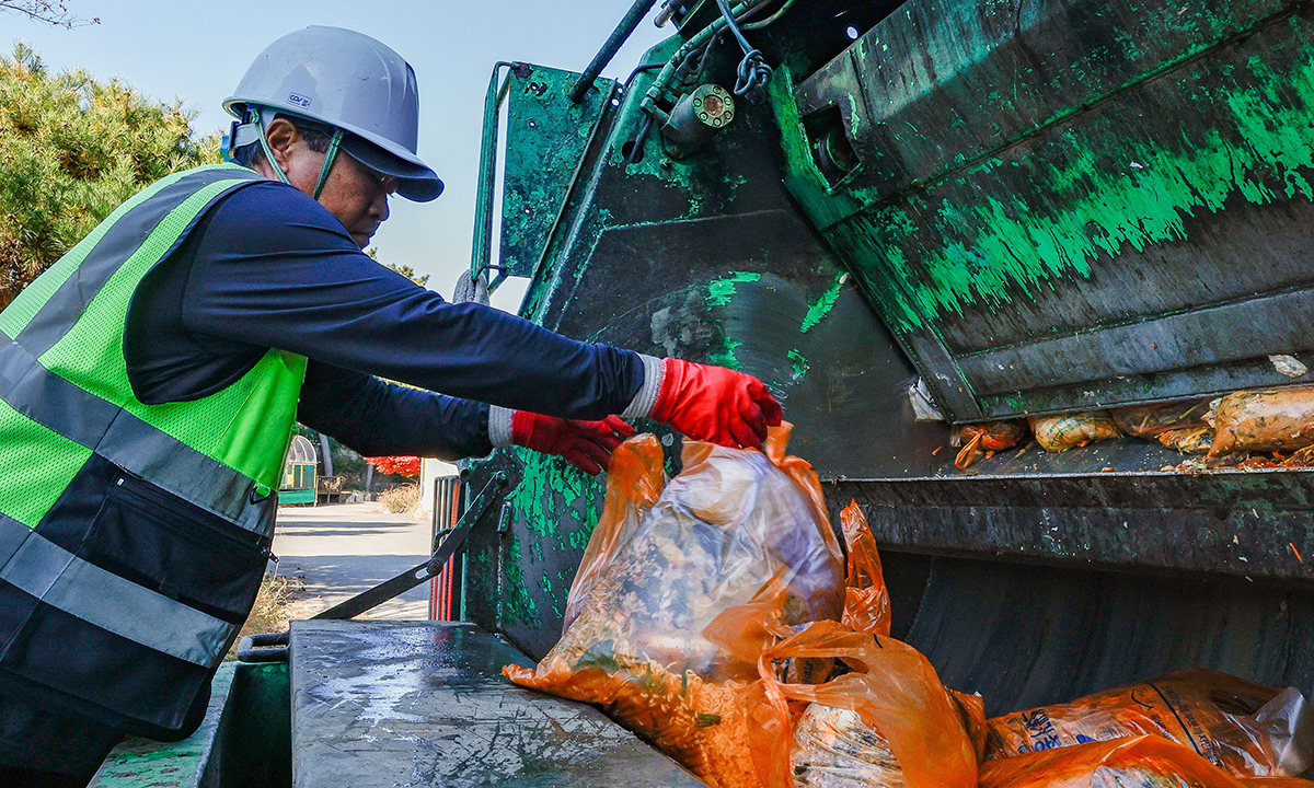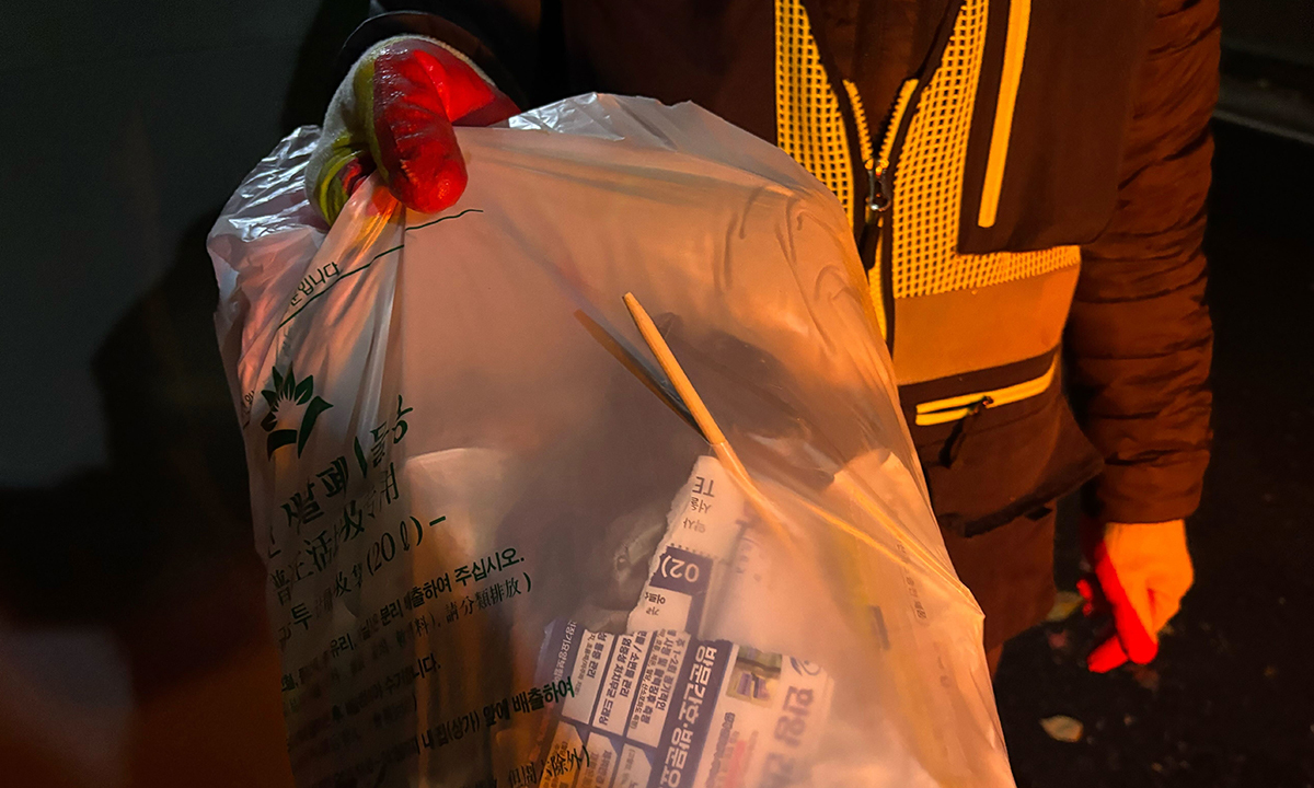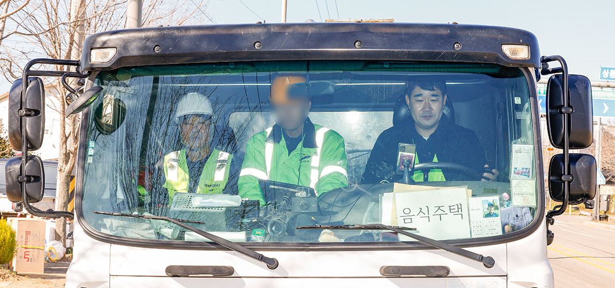 동틀 무렵, 경기 안산시의 주간 수거 현장에서는 쓰레기의 형태가 그대로 드러났다. 어둠 속에서 봉투를 더듬어 던질 필요는 없었다. 대신 압착진개차에서 터진 쓰레기봉투 속 음식물과 각종 오염물이 고스란히 눈에 들어왔다.