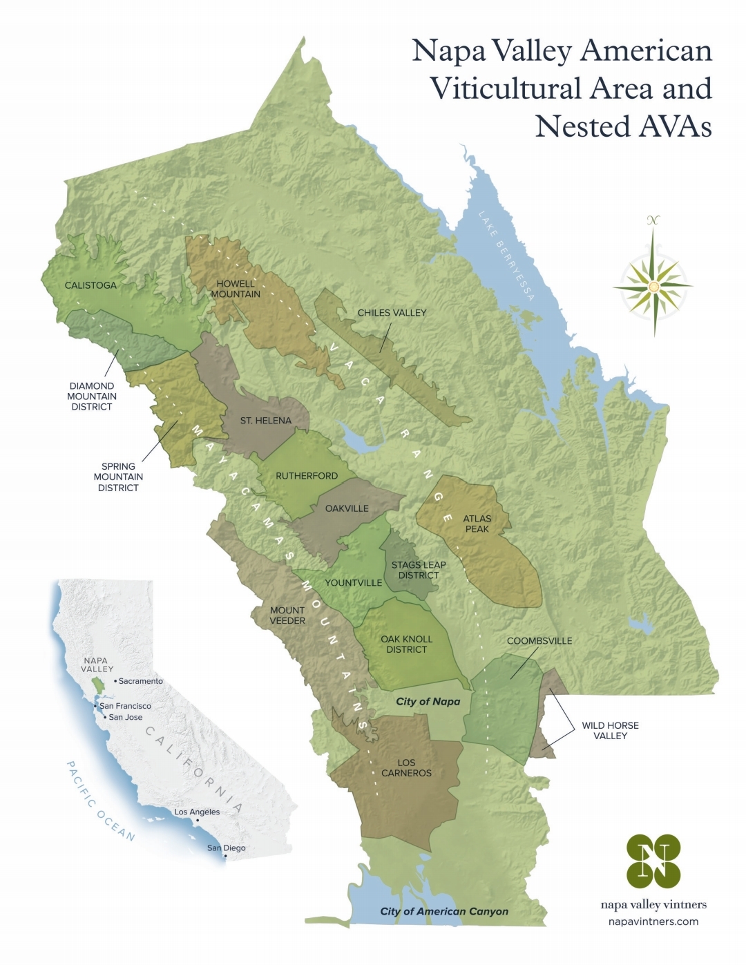 나파밸리는 서쪽에 마야 카마스 산맥이 가로 막고 있어 태평양 한류의 서늘한 기운이 직접 들어가 못합니다. 하지만 아래쪽 산 파블로 베이가 나파밸리 아래쪽까지 밀려 들어와 있어 이를 통해 서늘한 기운이 들어 옵니다. 로스 카르네로스는 이 영향을 직접 받고 내륙에 있는 오크빌과 루더포드가 서늘한 기운을 적절하게 받는 딱 가운데 지점에 위치해 있습니다. 두 곳이 나파밸리에서 최고의 카베르네 소비뇽 산지로 손꼽히는 이유랍니다. 나파밸리는 서쪽 마야카마스 산맥, 동쪽 바카 산맥 사이에 끼어있는 것도 빼어난 카베르네 소비뇽이 자라는 배경입니다. 마야카마스는 너무 차가운 한류의 직접적인 영향을 차단하고 바카 산맥은 내륙에서 오는 뜨거운 열기를 차단합니다. 낮에는 충분한 일조량을 확보하면서 밤에는 서늘한 기운을 품어 좋은 산도를 지닌 카베르네 소비뇽을 완성합니다.