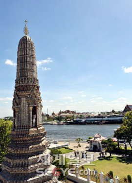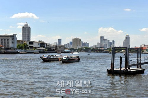 '왕들의 강' 따라 방콕 유람선 관광 매력적 태국 짜오프라야 강 입력 2010-07-22 16:48:29, 수정 2010-07-22 17:56:37 시위는 진정됐지만 소요의 여진은 태국 방콕 시내 일부 지역에서 확인됐다. 시위대의 방화로 건물 일부가 화재에 불탄 곳도 보였다. 태국 정부가 생각하기에도 기대만큼 많은 관광객이 찾지 않나 보다. 태국 정부가 이달 중순 세계 여러 나라의 언론인과 여행사 관계자를 대거 초청했다. 1000명 가까운 이들이 방콕 시내 대형 호텔 연회장을 찾았다. 환영 만찬을 주재한 춤뽄 실라파아차(69) 관광스포츠장관은 “태국은 안전하다”며 “관광객 맞이에 최선을 다하고 있으니, 태국으로 오라”고 부탁했다. 애초에 총리가 하기로 되어 있던 환영사를 대신한 관광장관의 표정은 밝았다. 그러면서 “올해 목표인 외국인 관광객 1450만명 유치를 위해 타이항공과 관광청은 최선을 다하고 있다”고 밝혔다.