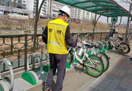 서울시는 시민들이 안심하고 이용할 수 있도록 매일 시내 전역에 있는 따릉이 2만5000대와 대여소 1540곳을 소독하고 있다. 배송 및 정비 전후 수시로 따릉이를 소독하는데 특히 접촉이 많은 앞바퀴 거치대와 손잡이 등을 집중 소독한다. 모든 대여소에는 손세정제를 비치했다.