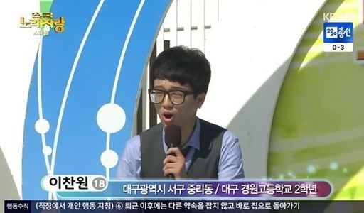 이후 고등학생이 된 후 다시 ‘전국노래자랑’에 출연한 이찬원은 ‘진도배기’를 열창하는 가하면 MC 송해를 “형님”이라 부르며 따르는 모습을 연출해 웃음을 자아냈다.