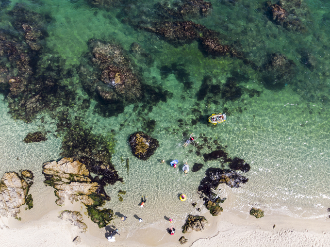 한국의 나폴리로 불리는 삼척의 장호항으로 친구 가족과 함께 여름휴가를 다녀왔습니다. 아이들과 함께 맑고 깨끗한 바다에서 물놀이 하는 모습을 드론으로 촬영한 사진입니다. (강원 삼척 장호항)