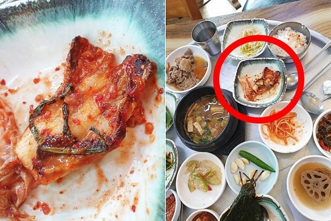 몇 년 전부터 이 음식점을 이용했다고 자신을 밝힌 네티즌 A씨는 “이날 갈빗집에서 정식을 주문했다. 정식은 불판을 사용하지 않고, 큰 쟁반에 모든 음식이 다 조리돼서 나온다”며 “그런데 밑반찬으로 나온 생김치 안에서 불판에 잘 구워진 김치를 발견했다”고 밝혔다.