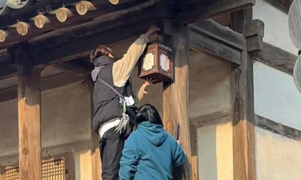 2일 경북 안동시 등에 따르면 지난달 30일 오후 3∼4시께 KBS 드라마 제작팀이 병산서원에서 만대루와 서원 나무 기둥에 소품용 모형 초롱 여러 개를 매달았다.