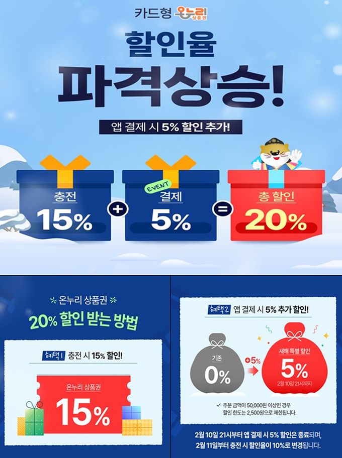 12일 대구시에 따르면 대구로 애플리케이션(앱) 내 온누리상품권 가맹점에서 2월 10일까지 충전식 카드형 온누리상품권으로 결제 시 5% 추가 할인 혜택을 제공한다.