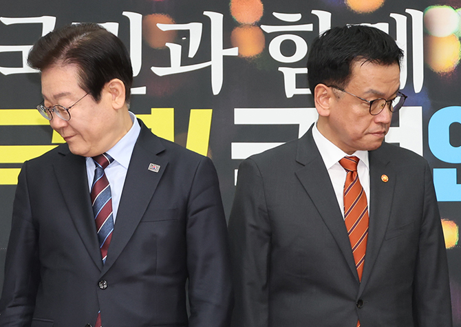 이 대표는 마은혁 헌법재판관 후보자 임을 보류한 것을 두고도 "무슨 기준인지 모르겠는데 마음에 드는 사람을 골라 일부는 임명하고 일부는 임명 안 하고 있다"며 "이러면 안 된다. 맹성을 촉구한다"고 말했다.