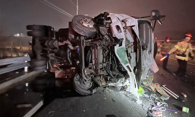 사고 직전 승합차는 블랙아이스로 인해 가드레일을 들이받고 멈춰선 상태였던 것으로 파악됐다.