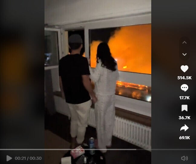 한 틱톡 유저(@dodon_66)는 자신의 틱톡 계정에 위 영상을 게시했다. 영상 속에서는 10대로 추정되는 사람들이 옆집에 불에 타는 것을 보면서 춤을 추고 있다. 2024년 12월 23일에 업로드된 해당 영상은 현재 소셜미디어 X(엑스)를 통해 퍼지고 있다.