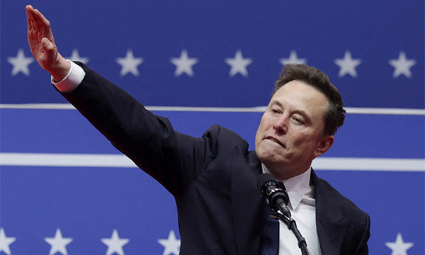 20일(현지시간) 가디언 보도에 따르면 트럼프 정부의 새로운 정부조직인 ‘정부효율부’(DOGE)의 공동 수장을 맡은 머스크는 이날 워싱턴의 캐피털 원 아레나에서 열린 트럼프 대통령 취임 축하 행사에서 연설했다. 그는 트럼프 대통령 등장을 앞두고 환호하는 지지자들에게 감사를 표하며 오른손으로 가슴을 친 뒤 손가락을 모은 채 대각선으로 팔을 들어 올렸는데, 이 동작이 나치식 경례를 연상시키면서 논란을 야기했다.