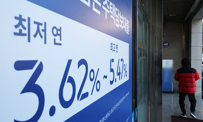 26일 금융권에 따르면 KB국민은행은 27일부터 은행채 5년물 금리를 지표로 삼는 가계대출 상품의 금리를 0.04%포인트 낮춘다. 그 결과 24일 기준 연 3.86∼5.26% 수준인 고정금리(혼합·주기형) 가계대출금리는 연 3.82∼5.22%로 낮아진다. 우리은행은 연휴 직후 31일 자로 주요 가계대출 상품의 가산금리를 최대 0.29%포인트 내린다.