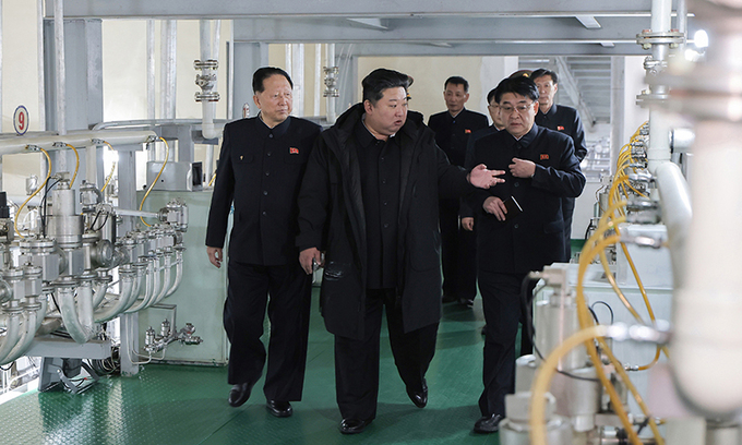 조선중앙통신은 김 위원장이 핵물질 생산기지와 핵무기 연구소를 현지지도하면서 "핵대응태세를 한계를 모르게 진화시키는 것은 우리가 견지해야 할 확고한 정치군사적 입장"이라고 말했다고 29일 보도했다.