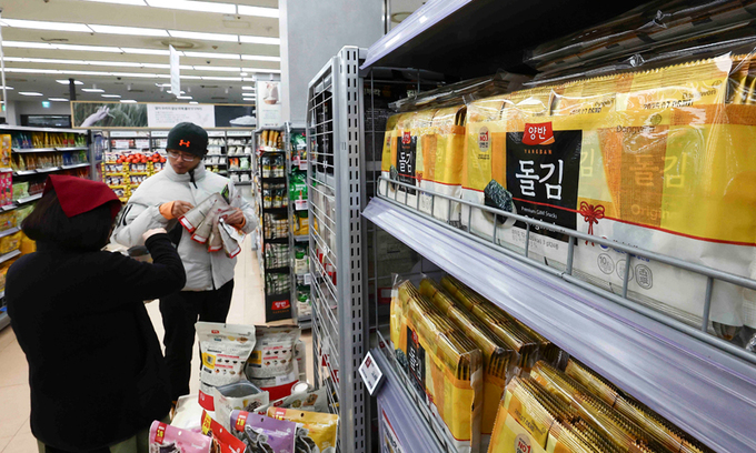 한국농수산식품유통공사(aT)에 따르면 전날 기준 마른김 가격은 장당 145원으로 평년보다 55.5%, 작년보다 31.9% 각각 비싸다.