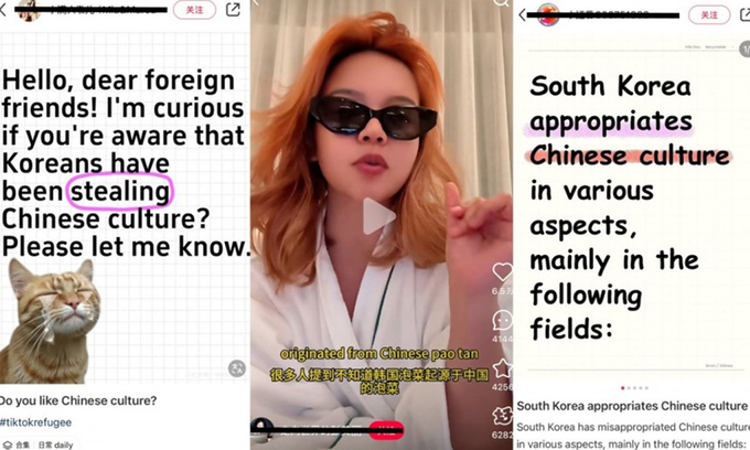 서 교수는 “샤오홍슈 확인 결과 중국인들이 미국인들에게 ‘한국은 도둑국’이라는 억지 주장을 펼치고 있다”며 “그야말로 미국인들에게 세뇌 중인데, ‘한국이 중국 문화를 훔쳐 가고 있다’ 등 상당히 많은 글과 영상들이 현재 퍼지고 있어 꽤 심각한 상황”이라고 전했다.