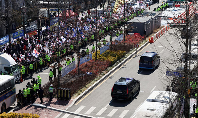 서울중앙지법은 20일 오전 윤 대통령의 첫 공판준비기일과 구속취소 심문을 진행했다. 윤 대통령이 직접 법원에 출석하면서 경찰은 주변 경비를 위해 기동대 50개 부대 3200여명을 투입했다. 강원, 인천 등 전국 각지 경찰 기동대 차량이 현장에서 목격됐다.